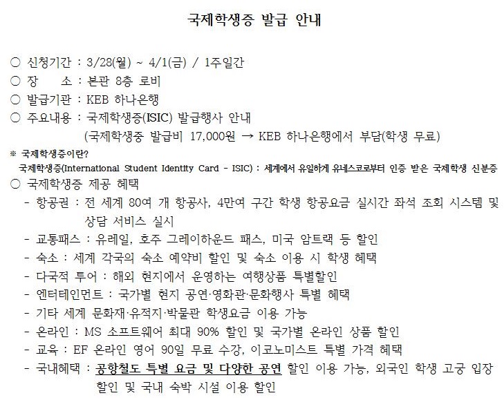 ±¹Á¦ÇлýÁõ(ISIC) ¹ß±Þºñ Áö¿ø Çà»ç ¾È³»