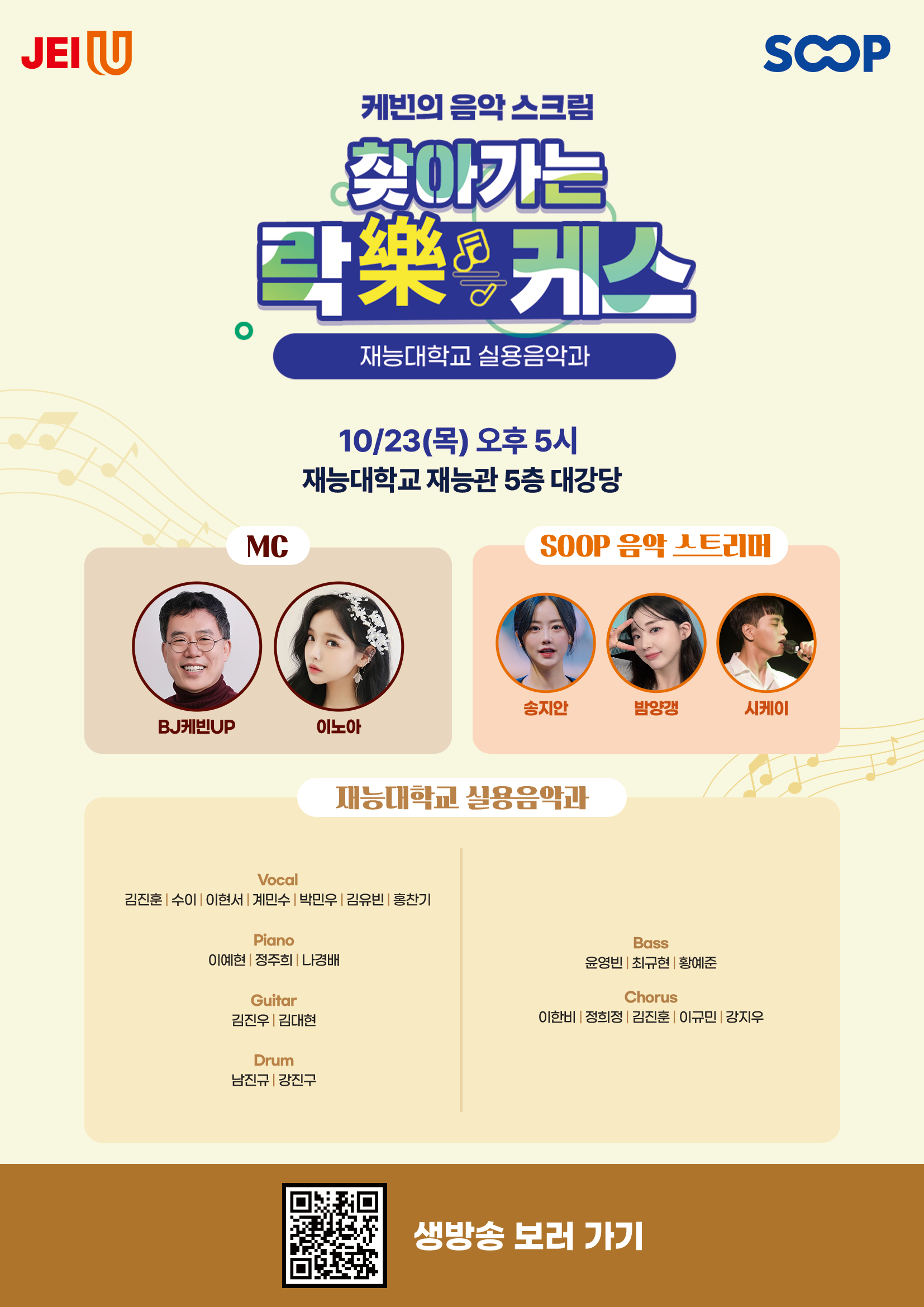 SOOP 'ÄɺóÀÇ À½¾Ç ½ºÅ©¸² ªO¾Æ°¡´Â ¶ôÄɽº' ½Ç¿ëÀ½¾Ç°ú »ý¹æ¼Û Ã⿬ ¹× ¹«·á°ø¿¬ ¾È³»