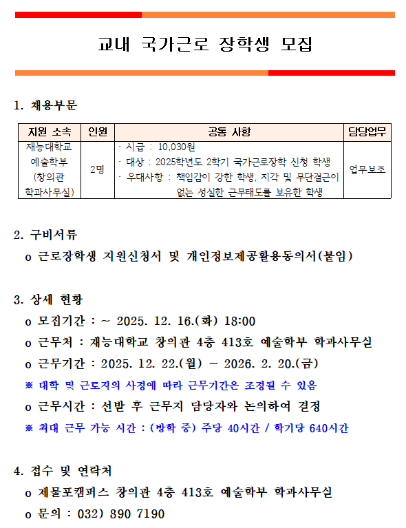 [¸¶°¨] 2025Çг⵵ 2Çб⠱³³» ±¹°¡±Ù·ÎÀåÇлý ¸ðÁý(¿¹¼úÇкÎ)