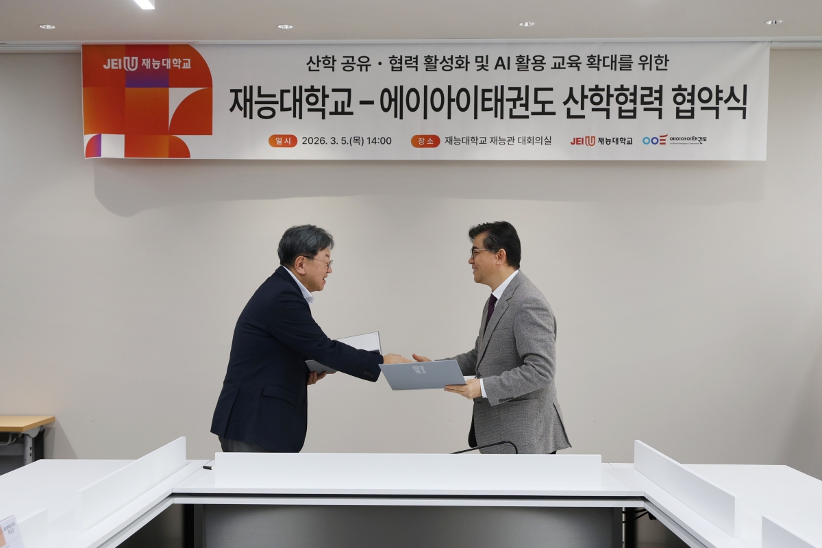 Àç´É´ëÇб³(ÃÑÀå À̳²½Ä)´Â 5ÀÏ AI ±â¹Ý űǵµ ±³À°·Æò°¡ ¼Ö·ç¼Ç Àü¹®±â¾÷ÀÎ ÁÖ½Äȸ»ç ¿¡À̾ÆÀÌűǵµ(´ëÇ¥ ÃÖÁß±¸)¿Í ½ºÆ÷Ã÷ ±³À° ÇÁ·Î±×·¥ °øµ¿ °³¹ß ¹× ±â¼ú »ó¿ëÈ­¸¦ À§ÇÑ »êÇÐÇù·Â ¾÷¹«Çù¾àÀ» ü°áÇß´Ù.