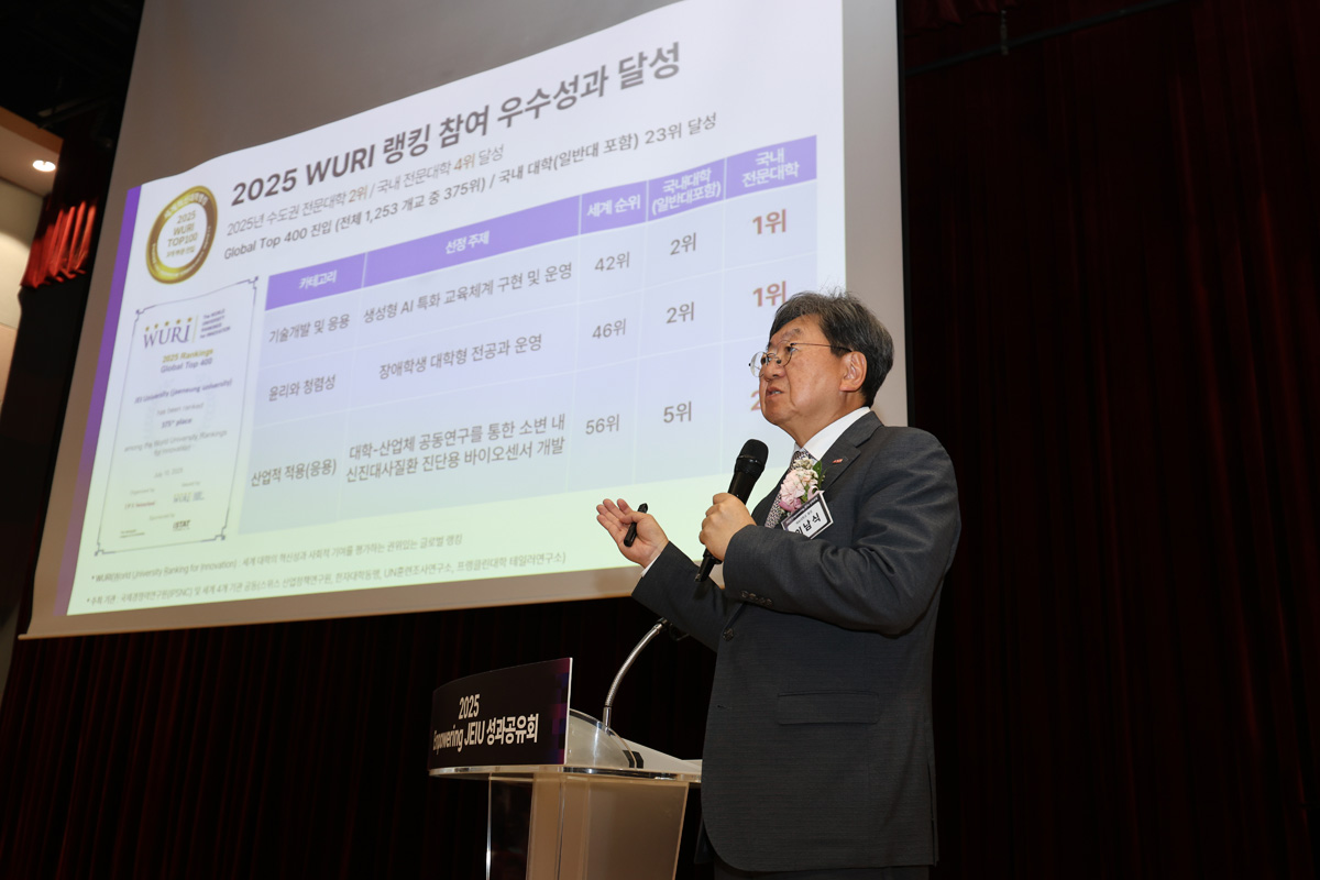 Àç´É´ëÇб³(ÃÑÀå À̳²½Ä)´Â 26~27ÀÏ ÀÌÆ²°£ ‘2025 Empowering JEIU ¼º°úÆ÷·³’À» °³ÃÖÇϰí AI·DX ±³À°Çõ½ÅÀ» ¼±¾ðÇß´Ù. À̹ø Æ÷·³Àº 3ÁÖ±â Àü¹®´ëÇÐ Çõ½ÅÁö¿ø»ç¾÷ ¼º°ú¸¦ Çг»¿Ü ±¸¼º¿ø°ú °øÀ¯Çϰí, Çлý ¼º°ø°ú Áö¿ª»çȸ »ó»ýÀ» À§ÇÑ ¹Ì·¡ ±³À° Çõ½Å ¹æÇâÀ» ¸ð»öÇϱâ À§ÇØ ¸¶·ÃµÆ´Ù.