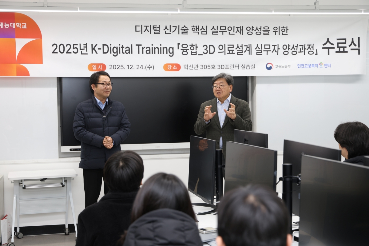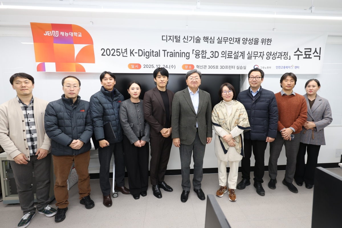Àç´É´ëÇб³(ÃÑÀå À̳²½Ä)´Â °í¿ë³ëµ¿ºÎ°¡ Áö¿øÇÏ´Â K-µðÁöÅÐ Æ®·¹ÀÌ´×(K-Digital Training) »ç¾÷ÀÇ ÀÏȯÀ¸·Î ¿î¿µÇÑ ‘À¶ÇÕ 3D ÀÇ·á¼³°è ½Ç¹«ÀÚ ¾ç¼º°úÁ¤’¿¡¼­ ÈÆ·Ã»ý Àü¿øÀÌ ¼ö·áÇÏ´Â ¼º°ú¸¦ °ÅµÎ¾ú´Ù°í 26ÀÏ ¹àÇû´Ù.