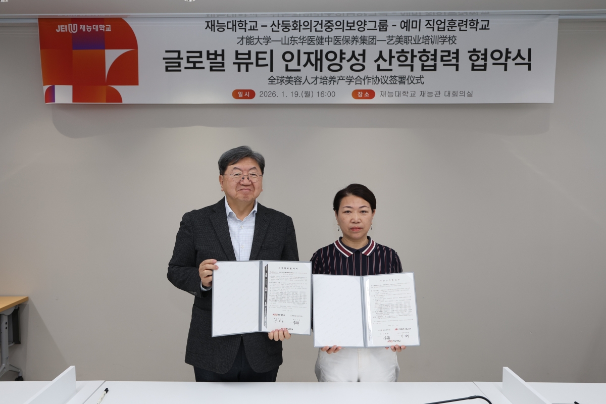 Àç´É´ëÇб³(ÃÑÀå À̳²½Ä)´Â Áö³­ 19ÀÏ Áß±¹ »êµ¿È­ÀǰÇÁßÀǺ¸¾ç±×·ì, ¿¹¹ÌÁ÷¾÷ÈÆ·ÃÇб³¿Í ±Û·Î¹ú K-ºäƼ ÀÎÀç¾ç¼ºÀ» À§ÇÑ 3ÀÚ ¾÷¹«Çù¾à(MOU)À» ü°áÇß´Ù.