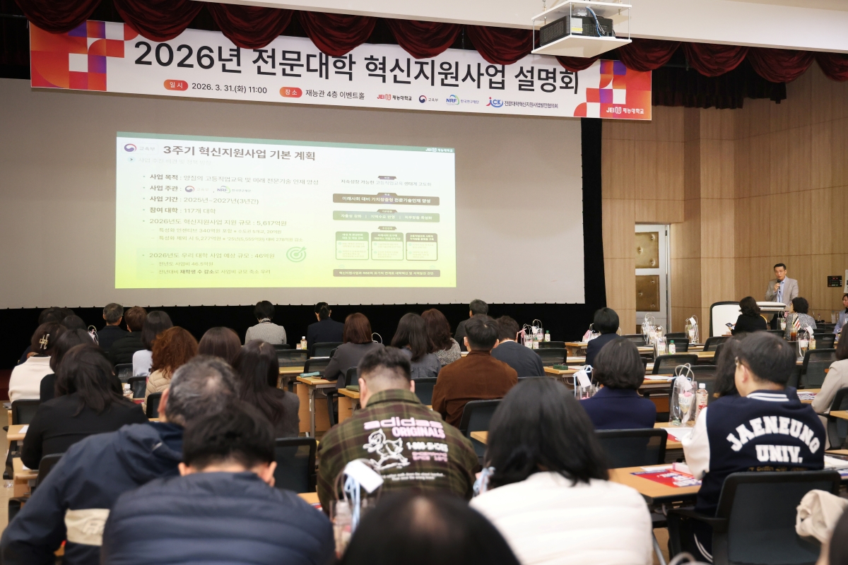 Àç´É´ëÇб³(ÃÑÀå À̳²½Ä)´Â 31ÀÏ Àç´É°ü À̺¥Æ®È¦¿¡¼­ ‘2026³â Àü¹®´ëÇÐ Çõ½ÅÁö¿ø»ç¾÷ ¼³¸íȸ’¸¦ °³ÃÖÇß´Ù. À̹ø ¼³¸íȸ´Â 2026Çг⵵ Çõ½ÅÁö¿ø»ç¾÷ ÃßÁø ¹æÇâ°ú ÁÖ¿ä °èȹÀ» °øÀ¯Çϰí, ´ëÇÐÀÇ Áö¼Ó°¡´ÉÇÑ ¹ßÀü Àü·«À» ¸ð»öÇϱâ À§ÇØ ¸¶·ÃµÆ´Ù.