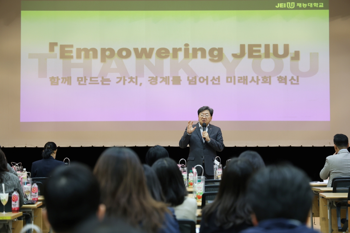 Àç´É´ëÇб³ Çõ½ÅÁö¿ø»ç¾÷´ÜÀº ‘EMPOWERING JEIU’¸¦ ½½·Î°ÇÀ¸·Î ±³À° Çõ½Å°ú ´ëÇРüÁú °³¼±À» Áö¼Ó ÃßÁøÇϸç, Çлý ¼º°ø Áß½ÉÀÇ ¹Ì·¡Çü ±³À° ȯ°æ ±¸Ãà¿¡ ¹ÚÂ÷¸¦ °¡Çϰí ÀÖ´Ù.