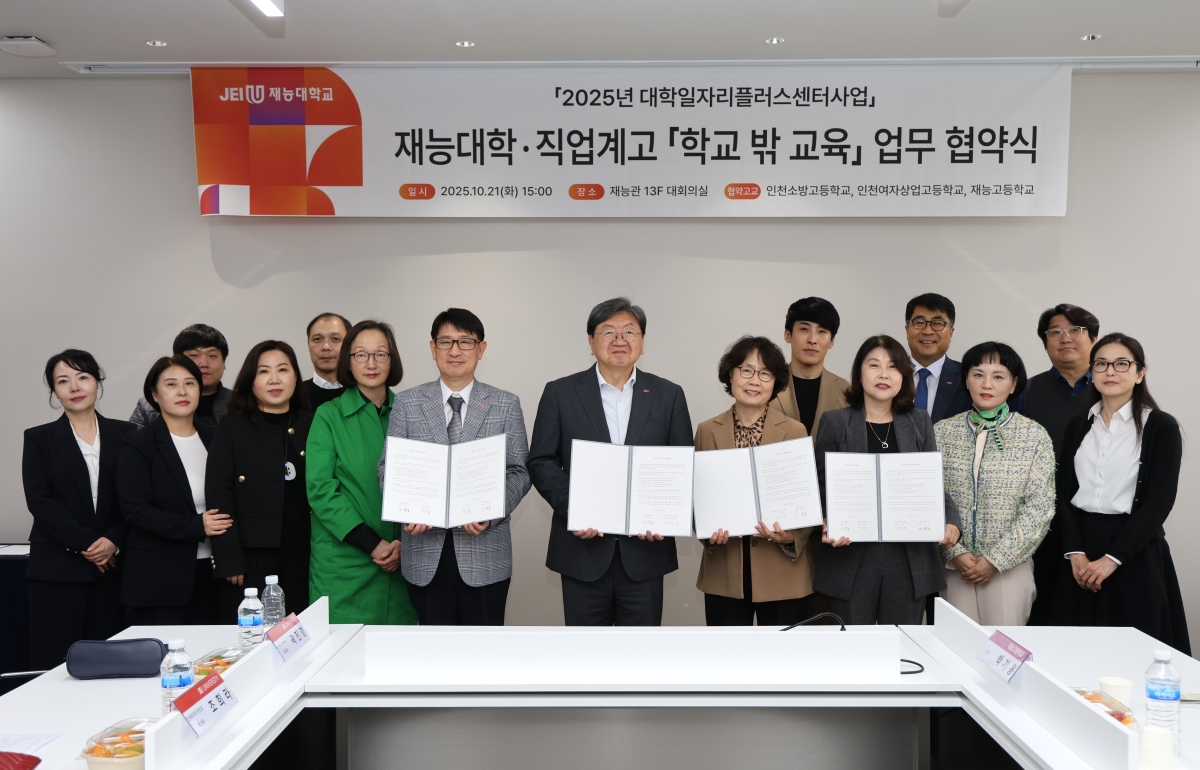 Àç´É´ëÇб³(ÃÑÀå À̳²½Ä) ´ëÇÐÀÏÀÚ¸®Ç÷¯½º¼¾ÅÍ´Â 21ÀÏ Àç´É°ü ´ëȸÀǽǿ¡¼­ ÀÎõ¼Ò¹æ°íµîÇб³(±³Àå ±èÈÖÅÂ), ÀÎõ¿©ÀÚ»ó¾÷°íµîÇб³(±³Àå º¯Ãµ¼ø), Àç´É°íµîÇб³(±³Àå ¹é±â¿ë)¿Í ‘Çб³ ¹Û ±³À°’ ¾÷¹«Çù¾àÀ» ü°áÇß´Ù.