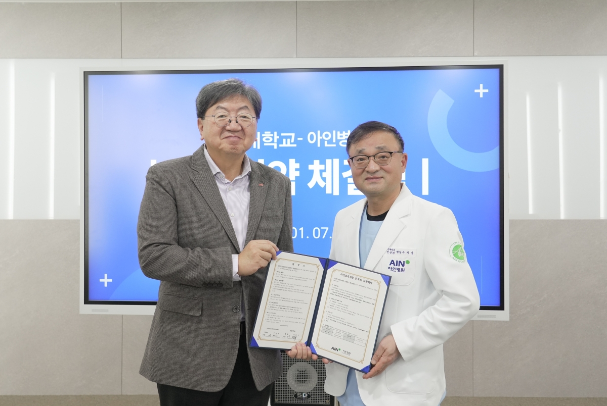 Àç´É´ëÇб³(ÃÑÀå À̳²½Ä)´Â ÀÎõ ¹ÌÃßȦ±¸ Á־ȵ¿¿¡ À§Ä¡ÇÑ ÀÇ·á¹ýÀÎ ¾ÆÀÎÀÇ·áÀç´Ü ¾ÆÀκ´¿ø(´ëÇ¥¿øÀå ±¸ÀÚ³²)°ú »êÇÐÇù·Â ¹× »óÈ£ ¹ßÀüÀ» À§ÇÑ ¾÷¹«Çù¾à(MOU)À» ü°áÇß´Ù°í 9ÀÏ ¹àÇû´Ù.