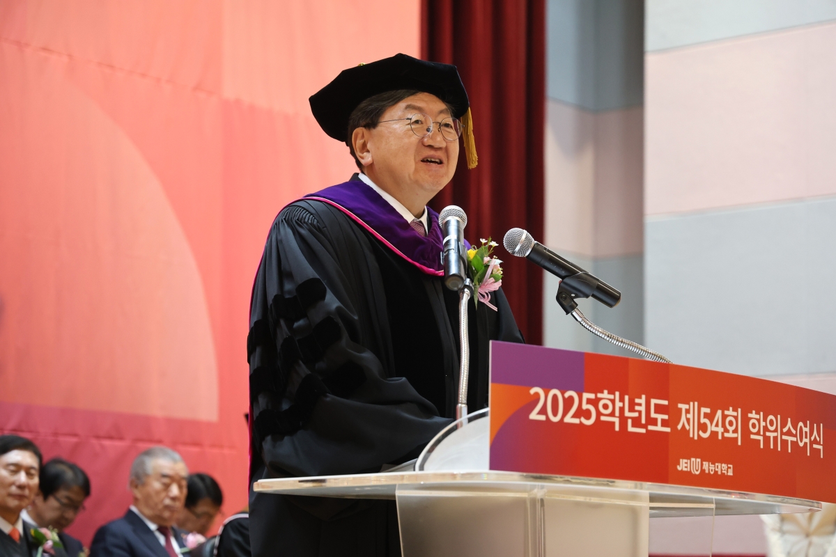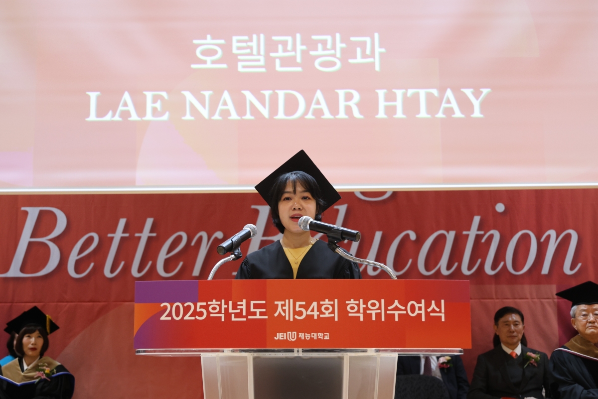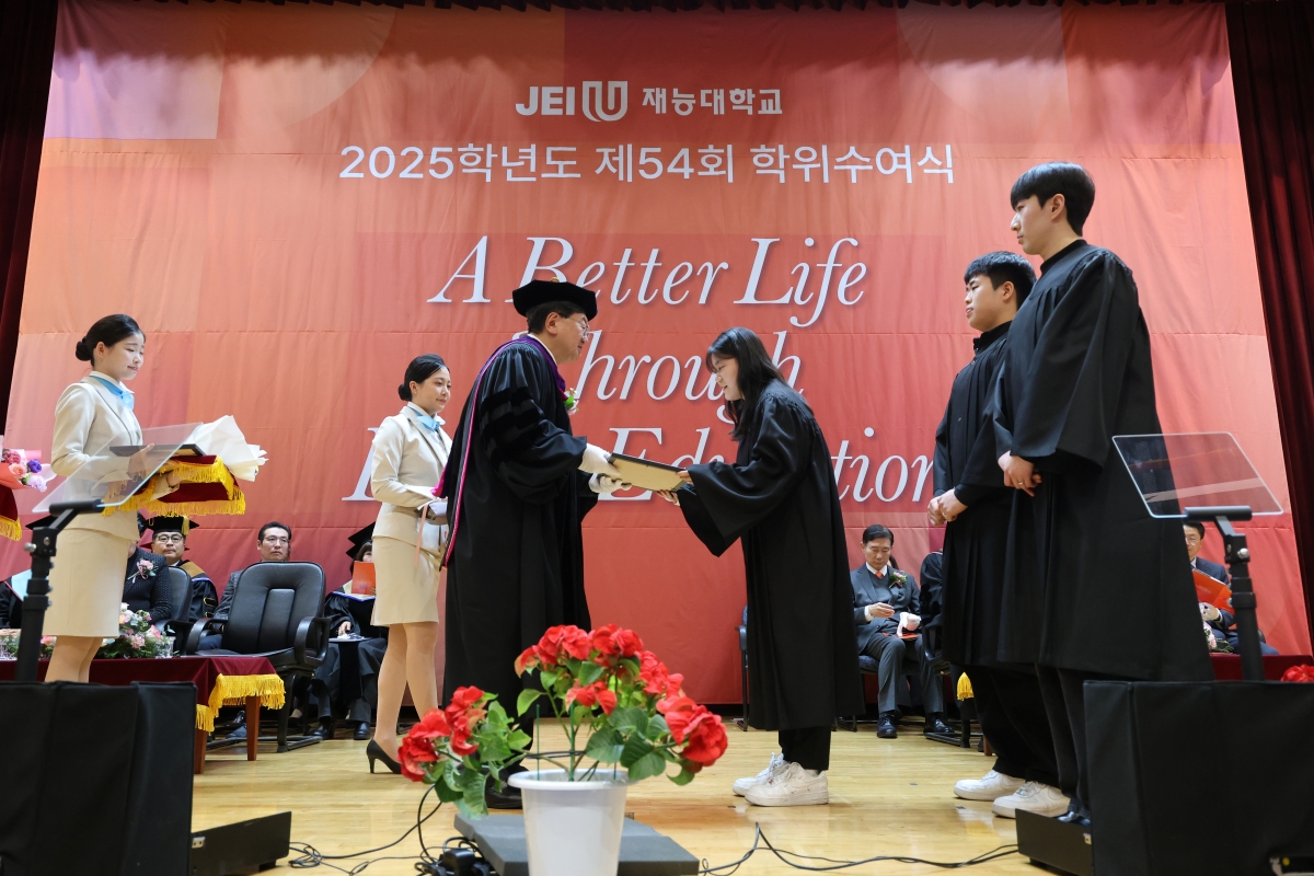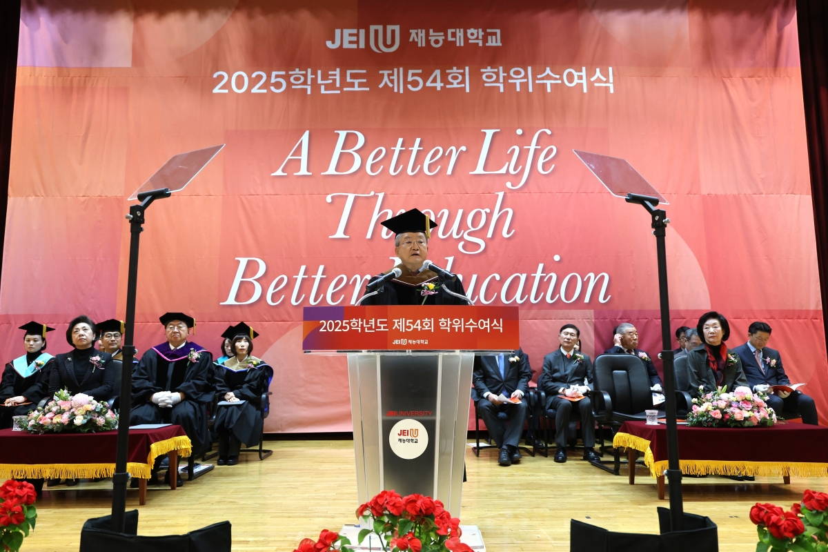 ¹Ú¼ºÈÆ Çб³¹ýÀÎ Àç´ÉÇпø ÀÌ»çÀåÀº Ãà»ç¸¦ ÅëÇØ “Àΰ£´Ù¿òÀ» ÀÒÁö ¾Ê´Â ÁÖüÀû ÀÎÀç·Î, ¹è¿òÀ» ¸ØÃßÁö ¾Ê´Â Æò»ýÇнÀÀÚ·Î, ±×¸®°í ¼¼´ë¿Í ±â¼ú, ¼¼»óÀ» ¿¬°áÇÏ´Â Çù¾÷ÀÇ ¸®´õ·Î ¼ºÀåÇØ ´Þ¶ó”´Â ´çºÎÀÇ ¸»·Î Á¹¾÷»ýµé¿¡°Ô °Ý·Á ¸Þ½ÃÁö¸¦ ÀüÇß´Ù.