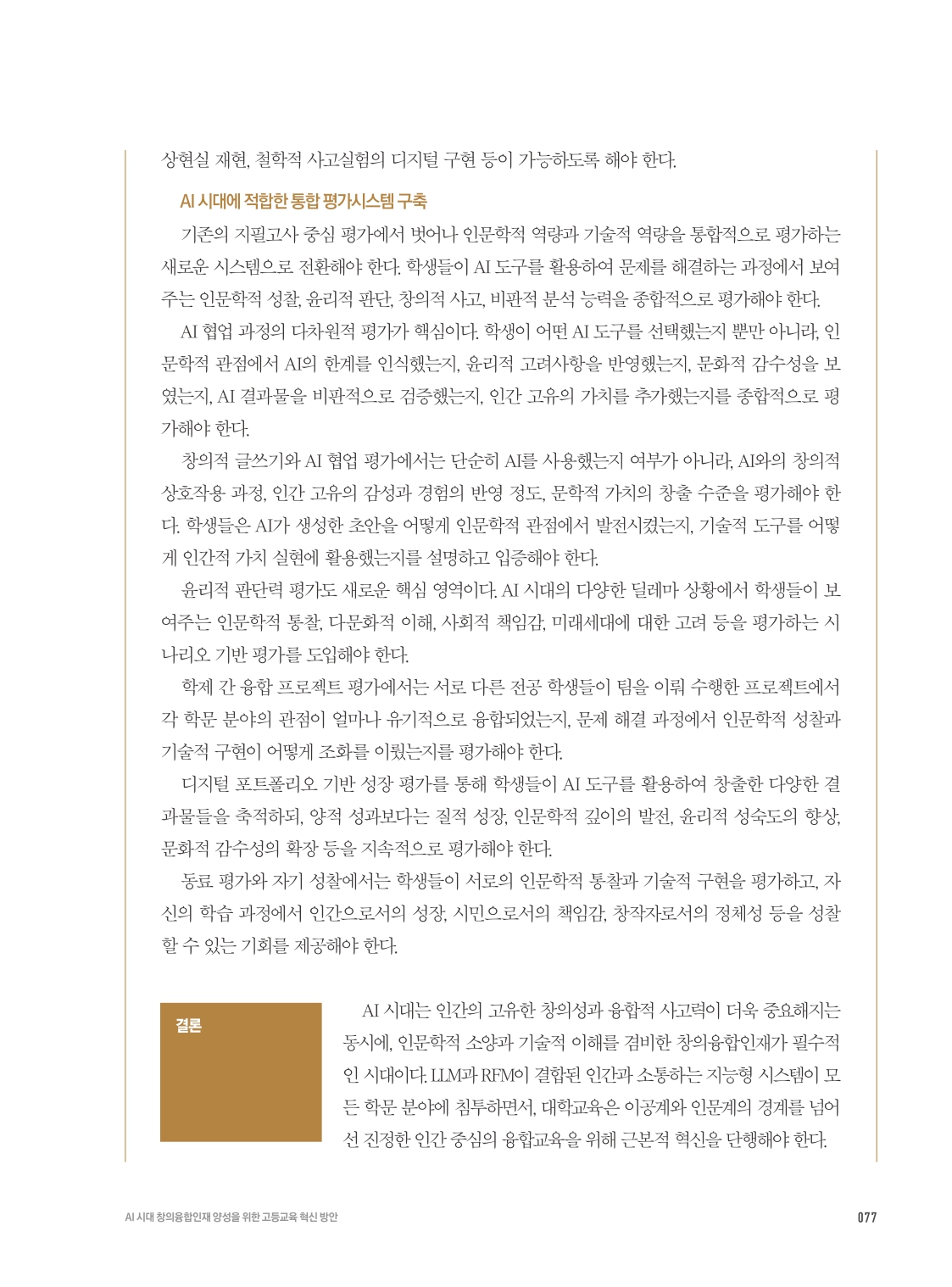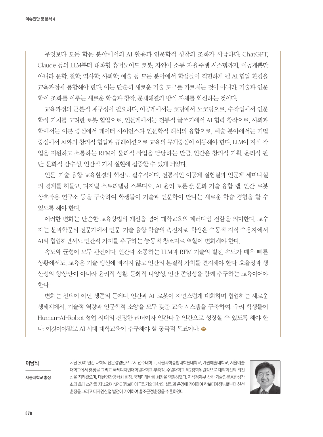 ³¡À¸·Î “AI½Ã´ëÀÇ °íµî±³À°Àº È¿À²¼º°ú »ý»ê¼º Çâ»ó¿¡ ¸Ó¹«¸£Áö ¾Ê°í, À±¸®Àû ¼ºÂû°ú ¹®È­Àû ´Ù¾ç¼º, Àΰ£ Á¸¾ö¼ºÀ» ÇÔ²² Ãß±¸ÇØ¾ß ÇÑ´Ù”¸ç “À̰ø°è ½ÇÇè½Ç°ú Àι®°è ¼¼¹Ì³ª½ÇÀÇ °æ°è¸¦ Çã¹°¾î âÀÇÀ¶ÇÕÀÎÀ縦 ¾ç¼ºÇÏ´Â ±³À°Çõ½ÅÀÌ Àý½ÇÇÏ´Ù”°í ¹àÇû½À´Ï´Ù.