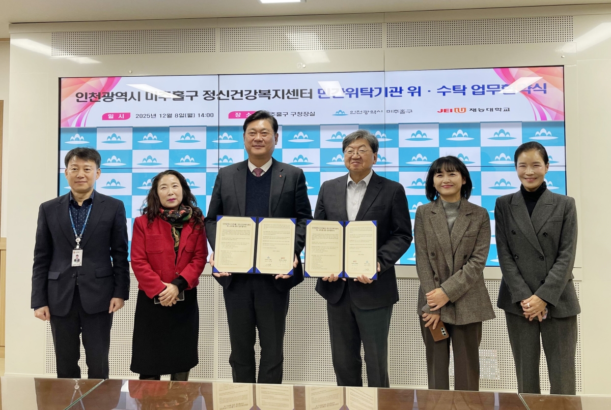 Àç´É´ëÇб³(ÃÑÀå À̳²½Ä)¿Í ÀÎõ ¹ÌÃßȦ±¸(±¸Ã»Àå ÀÌ¿µÈÆ)´Â 8ÀÏ ¹ÌÃßȦ±¸Ã»¿¡¼­ Á¤½Å°Ç°­º¹Áö¼¾ÅÍ ¹Î°£À§Å¹ ¿î¿µÀ» À§ÇÑ À§·¼öŹ ¾÷¹«Çù¾àÀ» ü°áÇß´Ù.