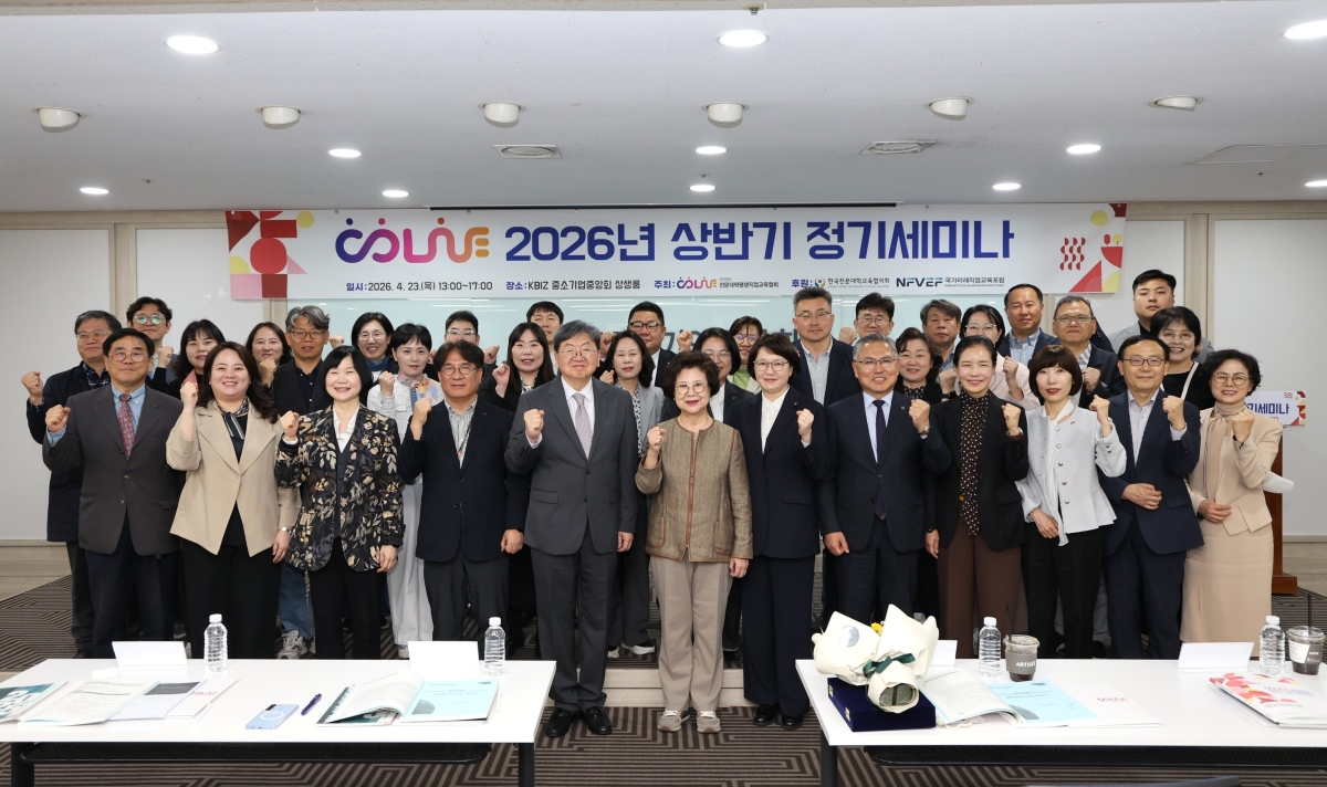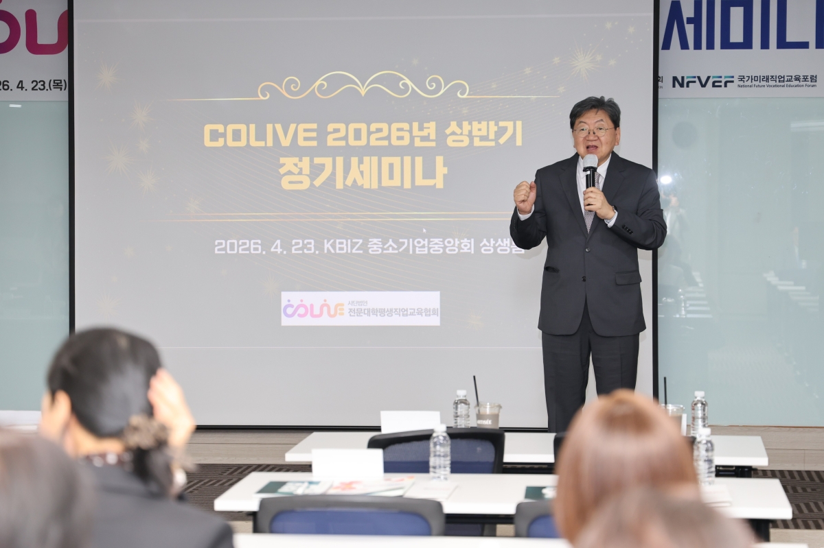 ÀÌ ÃÑÀåÀº 23ÀÏ ¼­¿ï ¿©Àǵµ Áß¼Ò±â¾÷Áß¾Óȸ »ó»ý·ë¿¡¼­ ¿­¸° ‘2026³â »ó¹Ý±â Àü¹®´ëÇÐÆò»ýÁ÷¾÷±³À°Çùȸ Á¤±â¼¼¹Ì³ª’¸¦ ÁÖÀçÇß´Ù. À̹ø ¼¼¹Ì³ª´Â Àü¹®´ëÇÐÆò»ýÁ÷¾÷±³À°Çùȸ(COLiVE, ÄÚ¶óÀ̺ê) ÁÖÃÖ·Î ¿­·ÈÀ¸¸ç, ±³À°°è¿Í »ê¾÷°è °ü°èÀÚµéÀÌ Âü¼®ÇØ Àü¹®´ëÇÐÀÇ Á÷¾÷±³À° ¹æÇâÀ» ³íÀÇÇß´Ù.