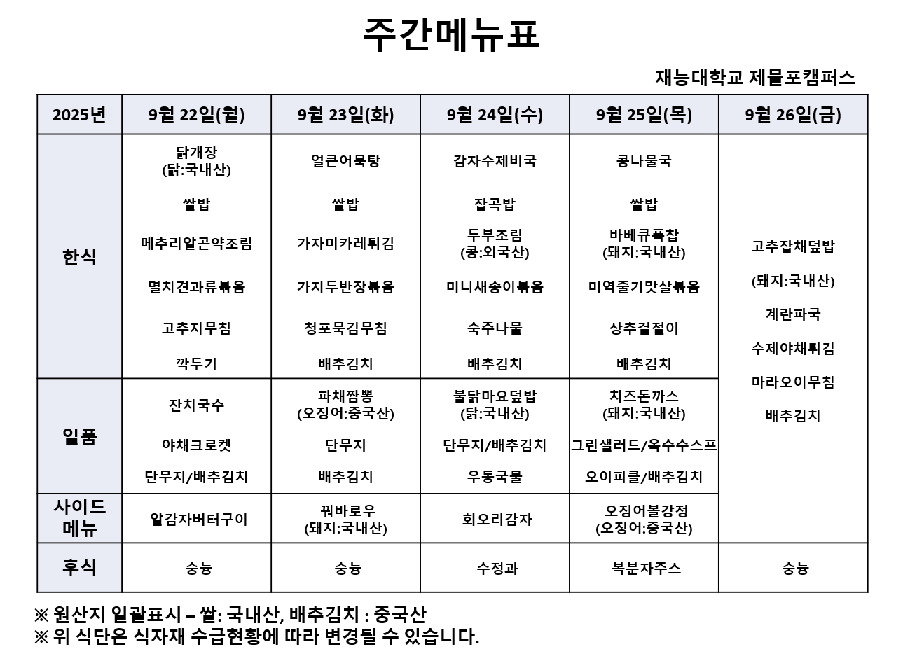 Àç´É´ëÇб³ 9¿ù4ÁÖÂ÷ ½Ä´ÜÀÔ´Ï´Ù.