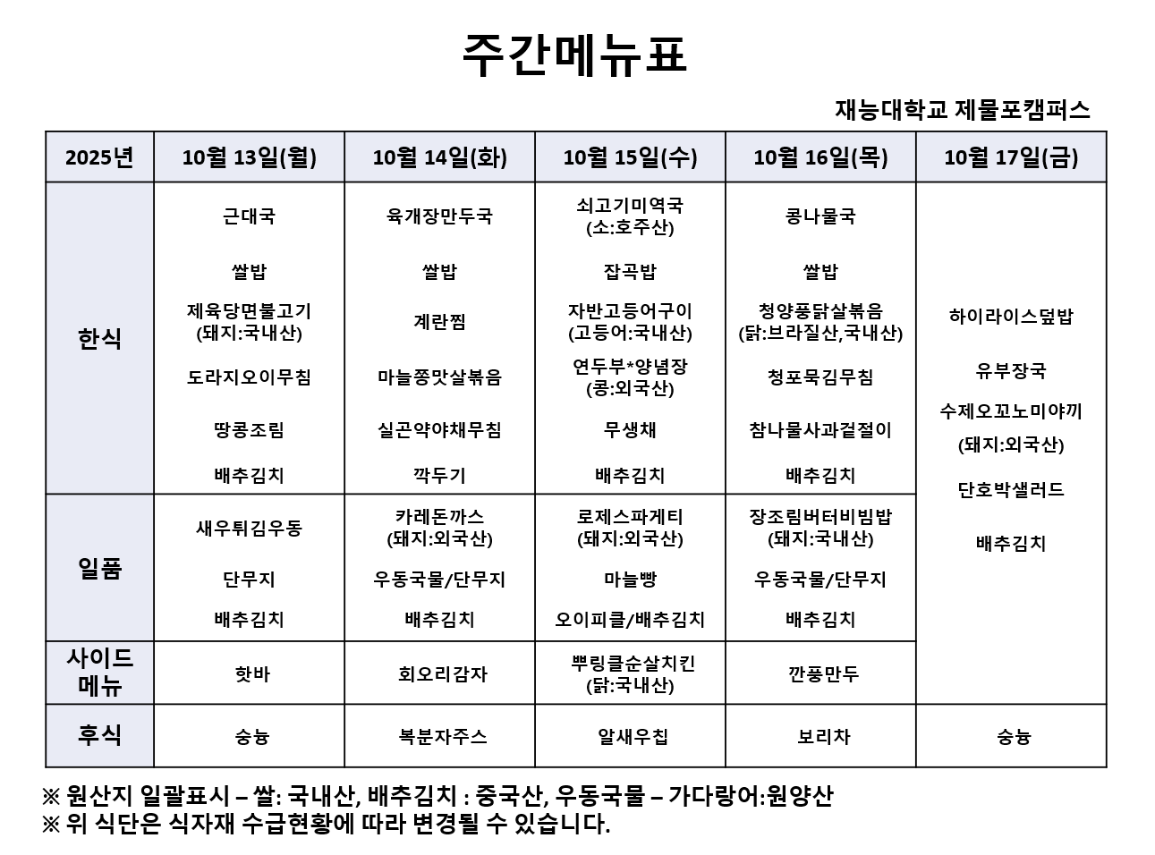 Àç´É´ëÇб³ 10¿ù3ÁÖÂ÷ ½Ä´ÜÀÔ´Ï´Ù.