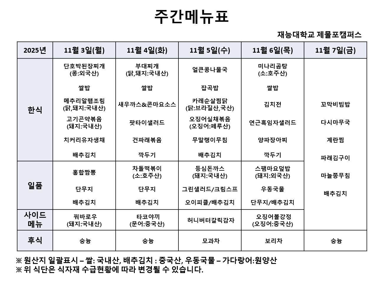 Àç´É´ëÇб³ 11¿ù1ÁÖÂ÷ ½Ä´ÜÀÔ´Ï´Ù.