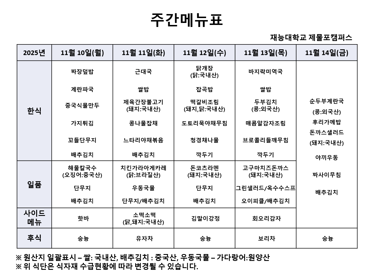Àç´É´ëÇб³ 11¿ù2ÁÖÂ÷ ½Ä´ÜÀÔ´Ï´Ù.