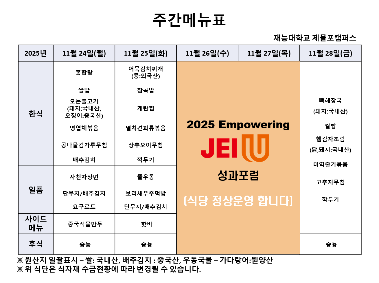 Àç´É´ëÇб³ 11¿ù4ÁÖÂ÷ ½Ä´ÜÀÔ´Ï´Ù.