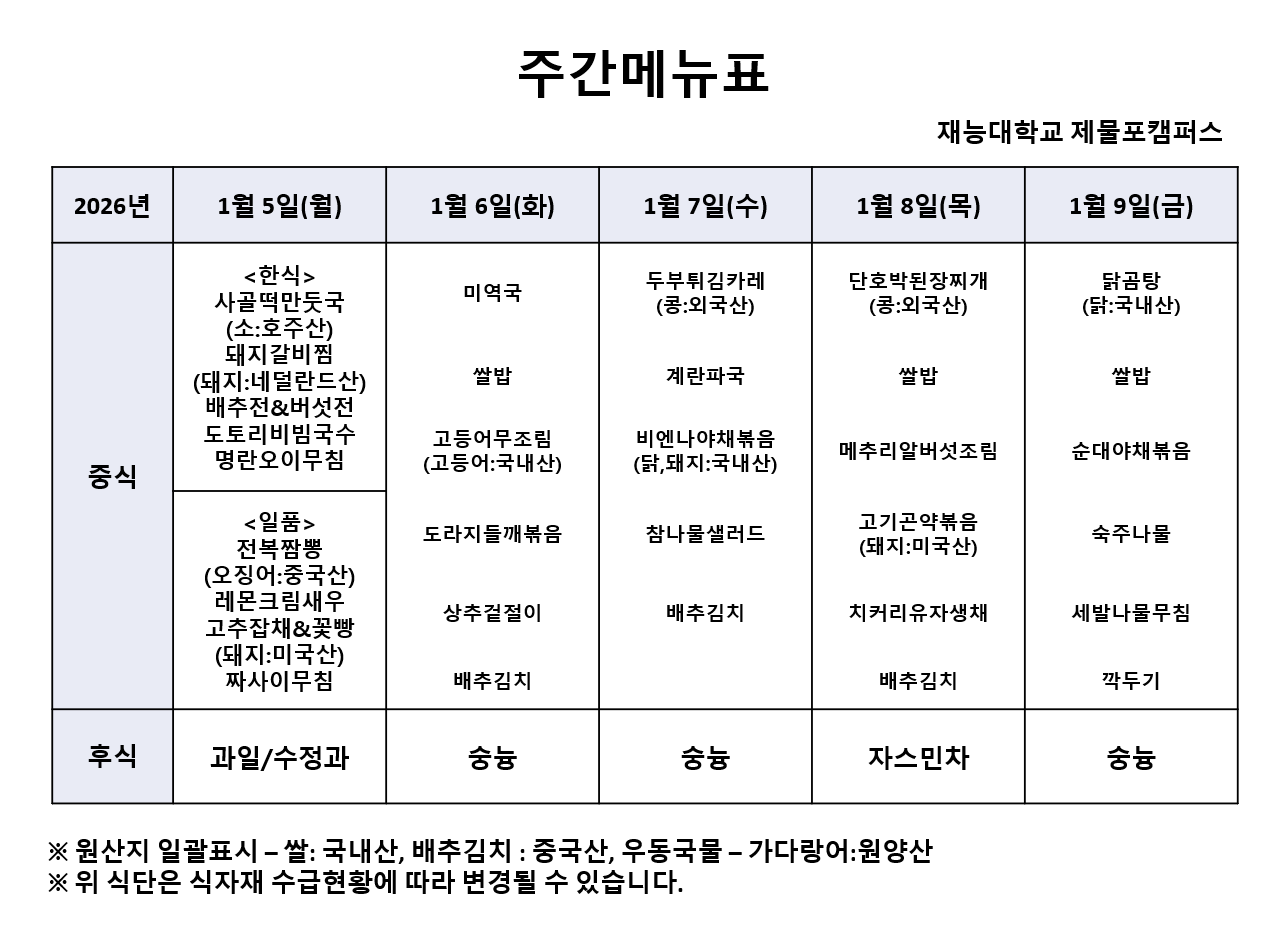 Àç´É´ëÇб³ 1¿ù 1ÁÖÂ÷ ½Ä´ÜÀÔ´Ï´Ù.
