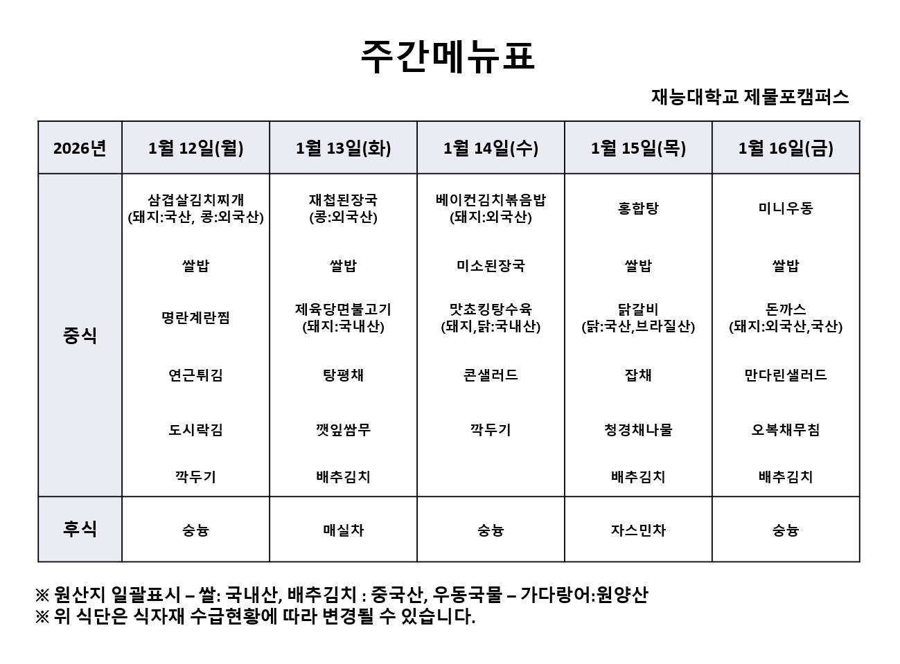 Àç´É´ëÇб³ 1¿ù2ÁÖÂ÷ ½Ä´ÜÀÔ´Ï´Ù.