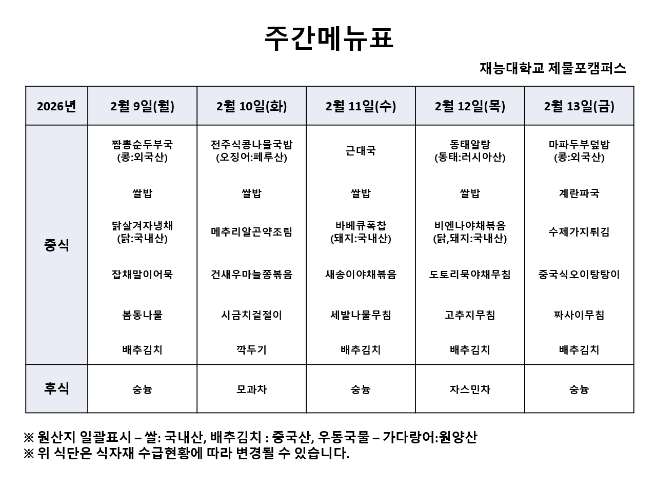 Àç´É´ëÇб³ 2¿ù2ÁÖÂ÷ ½Ä´ÜÀÔ´Ï´Ù.