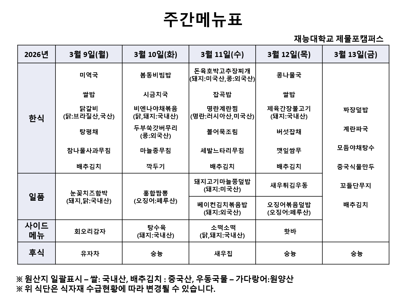 Àç´É´ëÇб³ 3¿ù1ÁÖÂ÷ ½Ä´ÜÀÔ´Ï´Ù.