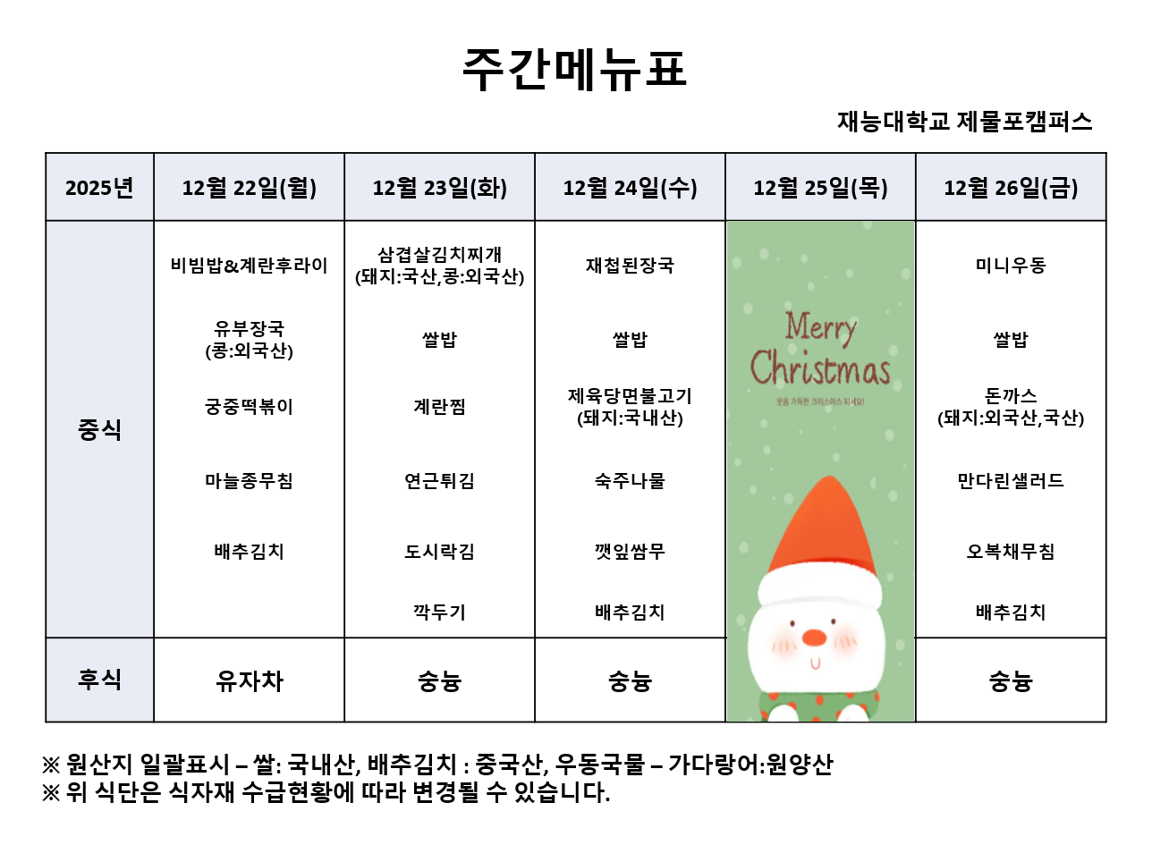 Àç´É´ëÇб³ 12¿ù3ÁÖÂ÷ ½Ä´ÜÀÔ´Ï´Ù.
