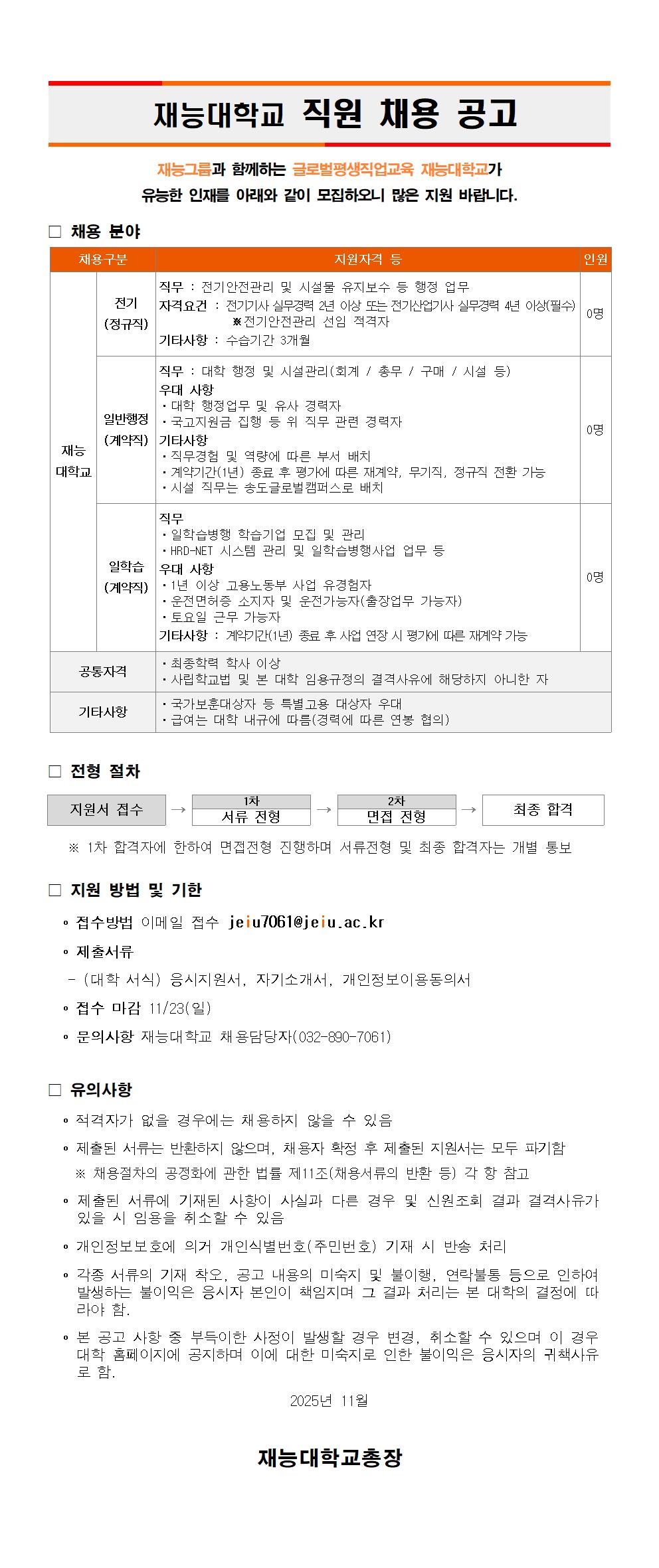 2025-10Â÷ Àç´É´ëÇб³ Á÷¿ø ä¿ë °ø°í(~11/23)