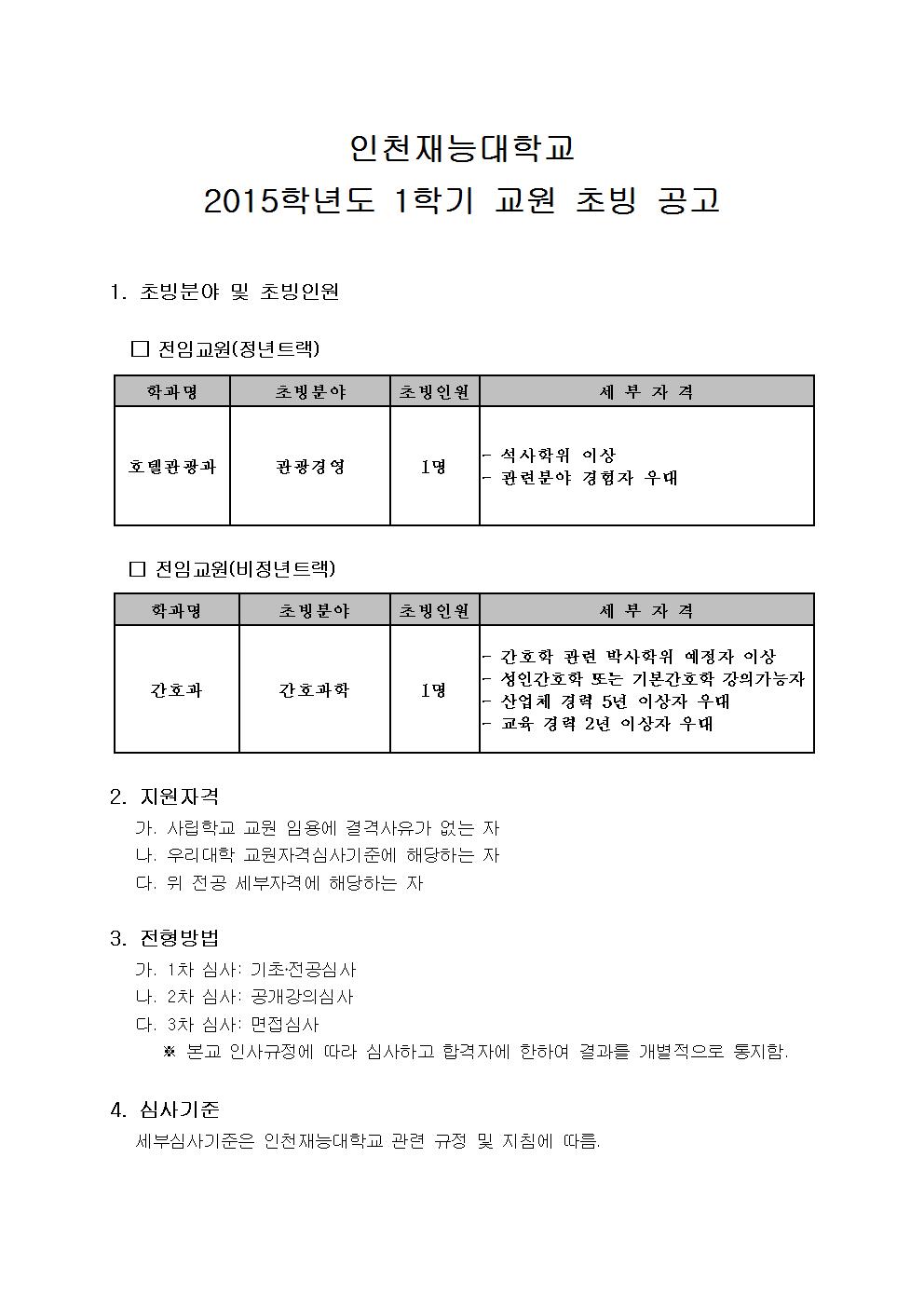 ÀÎõÀç´É´ëÇб³ 2015³âµµ 1Çб⠱³¿ø Ãʺù °ø°í