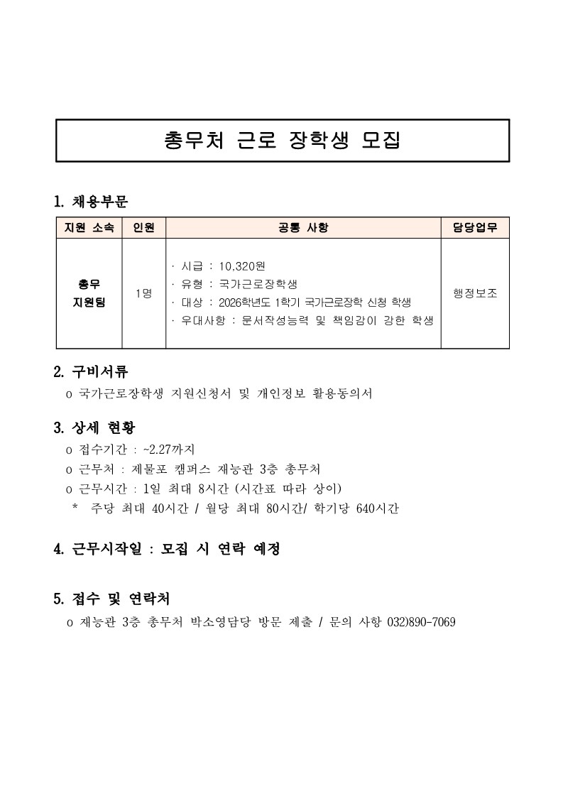 Ãѹ«Ã³ ÇÏ°è¹æÇÐ ±¹°¡±Ù·ÎÀåÇлý ¸ðÁý [¸¶°¨]