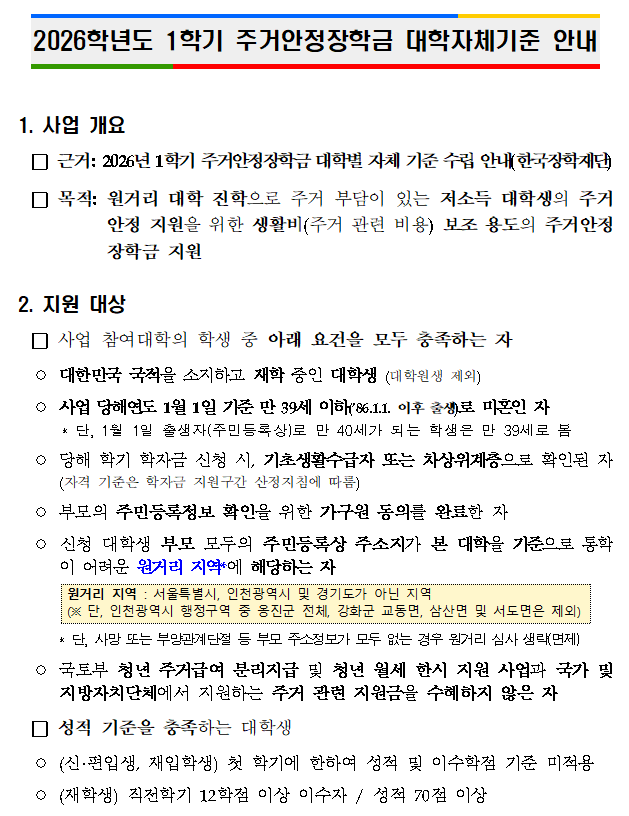 2026³âµµ 1Çбâ ÁְžÈÁ¤ÀåÇÐ±Ý ´ëÇÐÀÚü±âÁØ ¾È³»