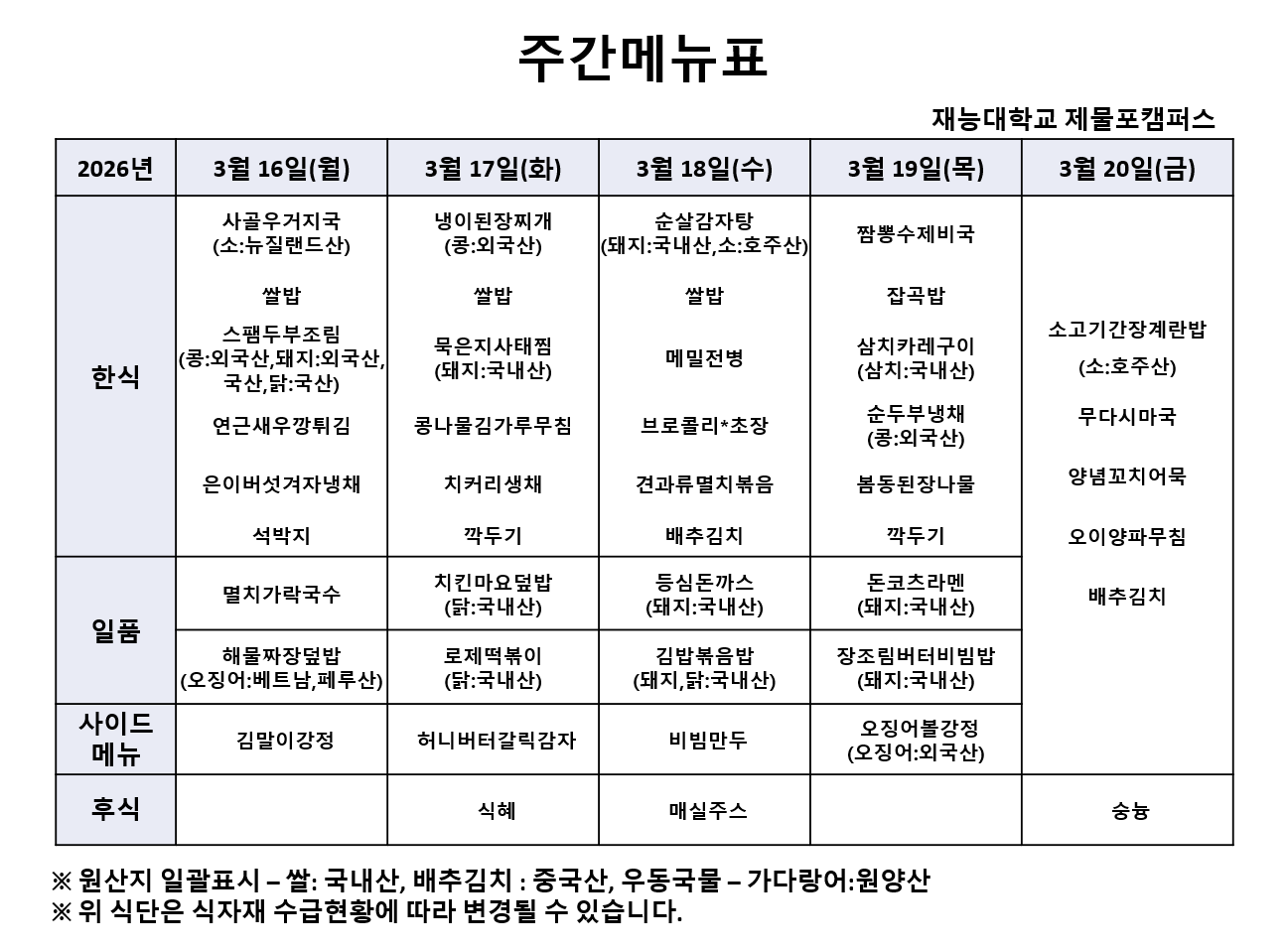 Àç´É´ëÇб³ 3¿ù 3ÁÖÂ÷ ½Ä´ÜÀÔ´Ï´Ù.