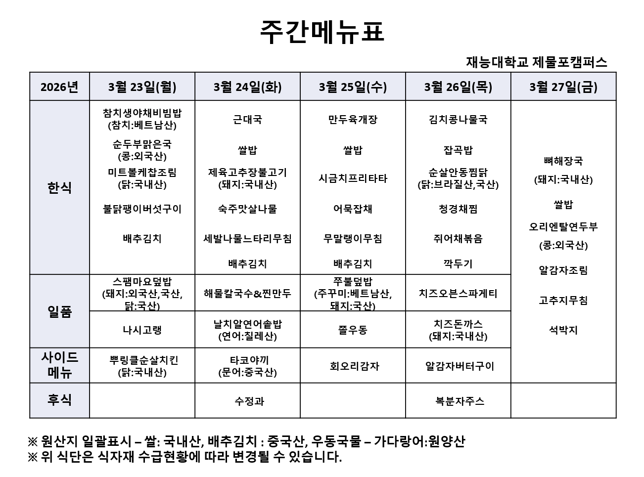 Àç´É´ëÇб³ 3¿ù4ÁÖÂ÷ ½Ä´ÜÀÔ´Ï´Ù.