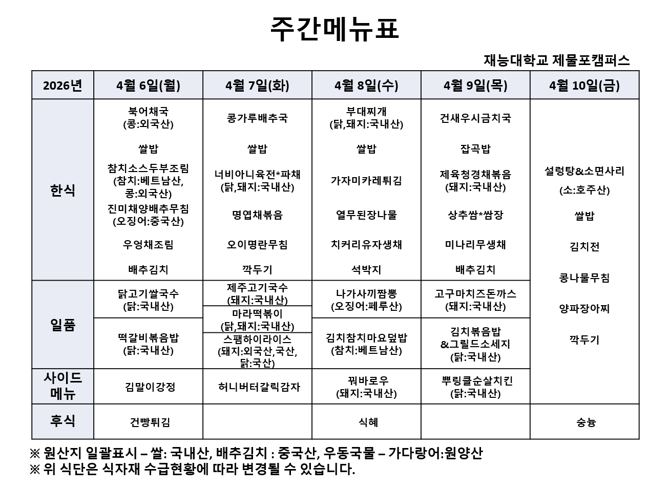Àç´É´ëÇб³ 4¿ù1ÁÖÂ÷ ½Ä´ÜÀÔ´Ï´Ù.