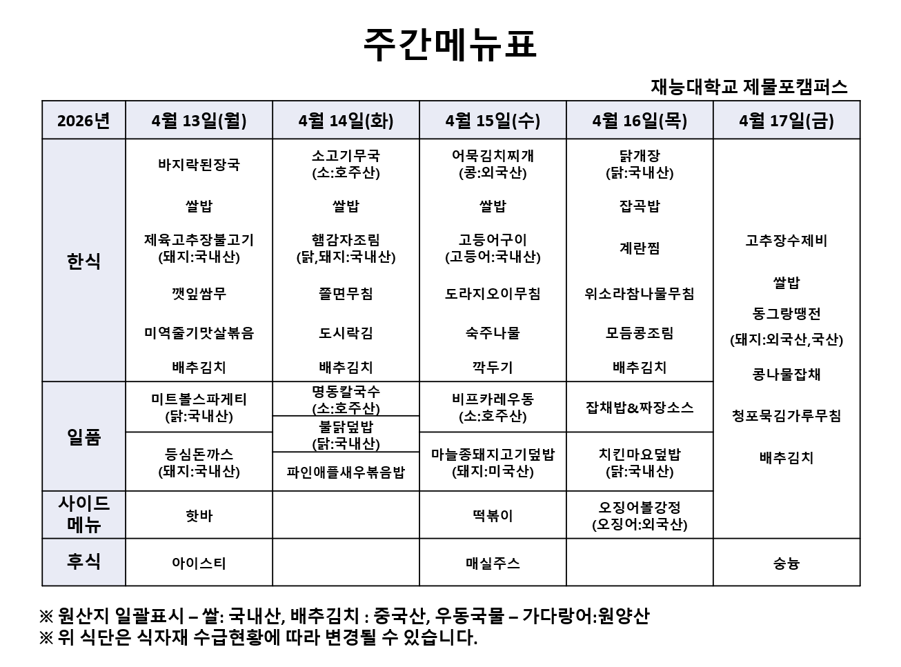 Àç´É´ëÇб³ 4¿ù2ÁÖÂ÷ ½Ä´ÜÀÔ´Ï´Ù.